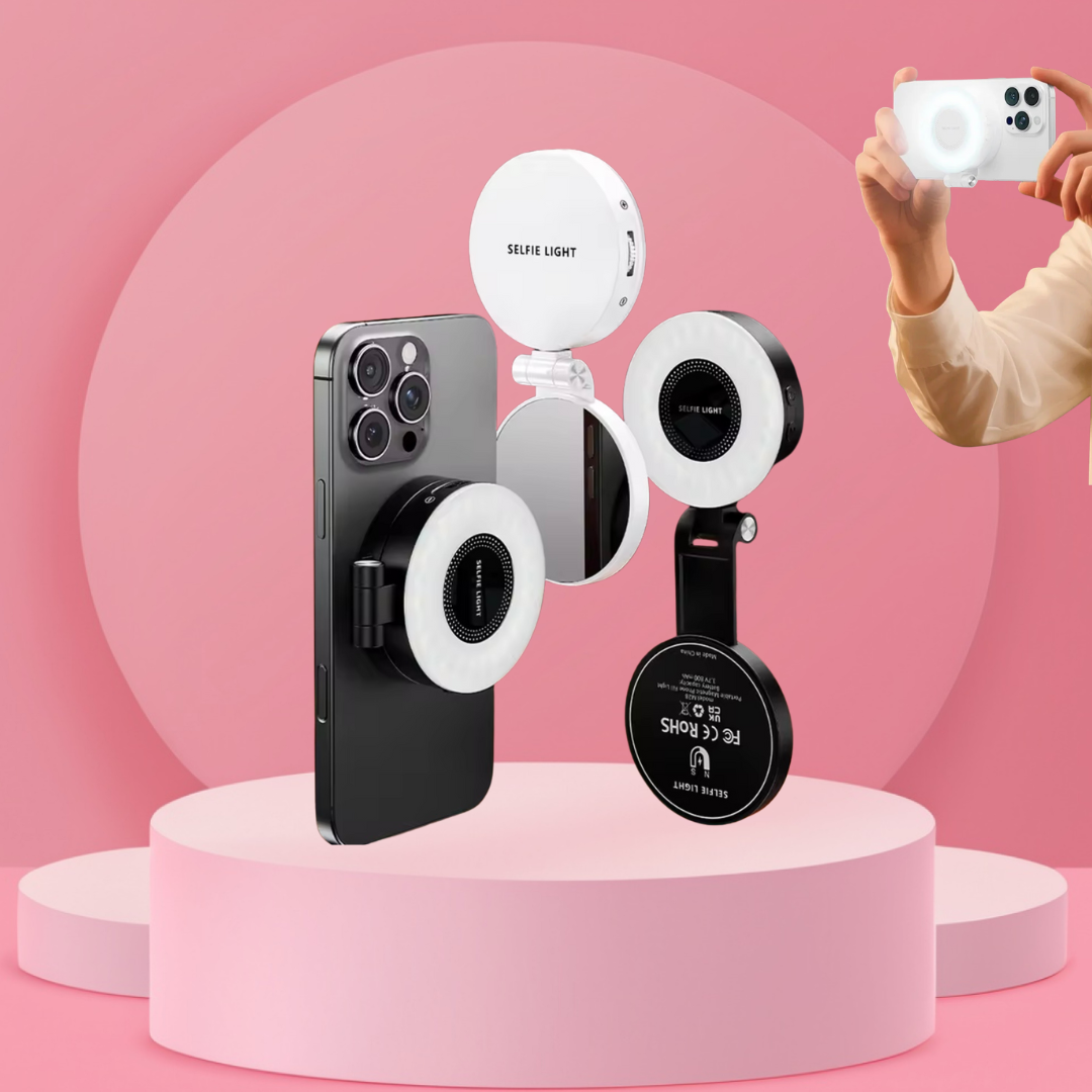 Ditch the clutter this sleek 3-in-1 device combines an LED selfie light, a built-in mirror and a stable MagSafe phone mount. Whether you’re doing your makeup, joining a call or filming content, it keeps you camera-ready anytime, anywhere.